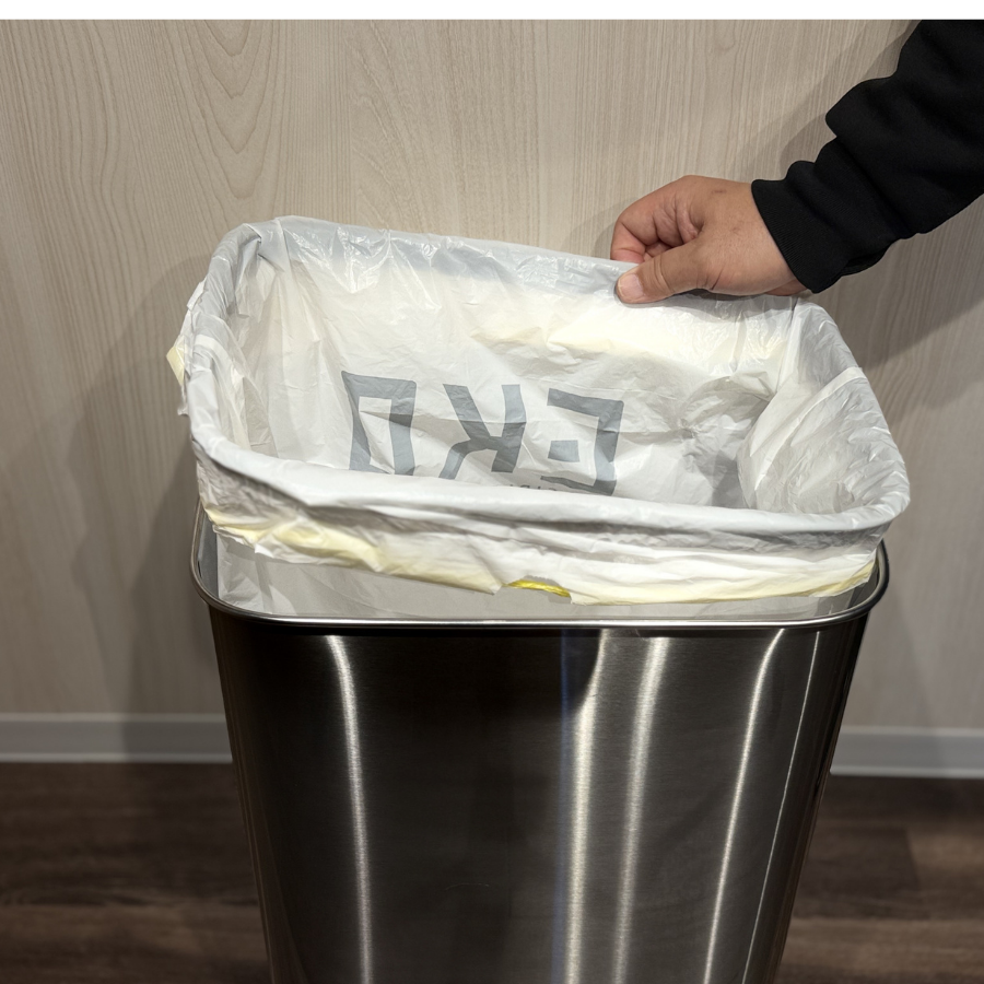 インナーリングとセンサーを一体化したすっきり設計により、ゴミ袋を美しく隠して固定。バッテリーも長持ちで、安心して長くお使いいただけます。